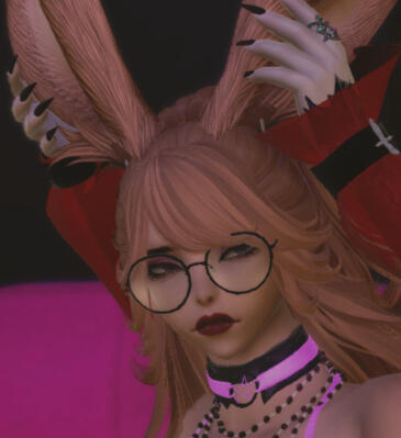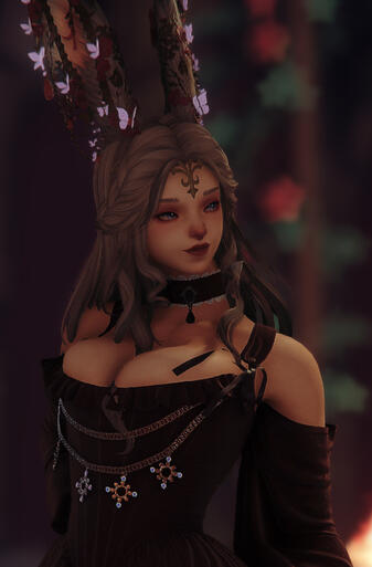 notable features. veis bears the horns and tail of an au ra, but her body remains free of any scales. in place of scales, she has had a map of the stars inked across the empty canvas of her skin, etched upon it in a bioluminescent white that twinkles as though they were real.